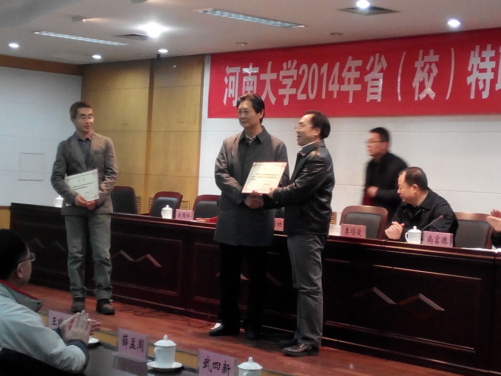 在明伦校区新办公楼一楼会议室举行2014年省(校)特聘教授、黄河学者聘任仪式,21位学术带头人分别受聘省(校)特聘教授、黄河学者。省教育厅高教处正处级调研员李培俊,校长娄源功、常务副校长赵国祥出席聘任仪式,受聘人员所在美女做爱影片